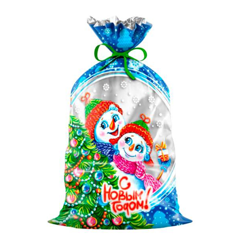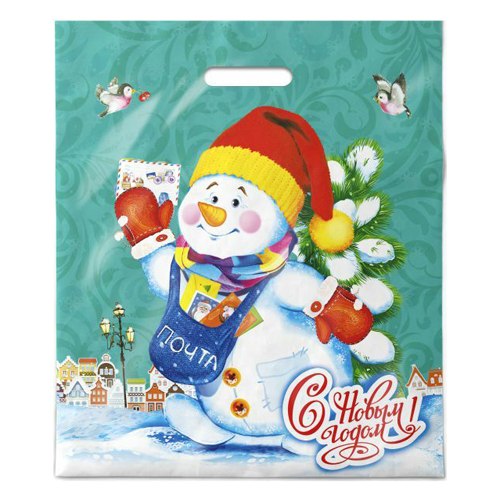 Пакет ПЭ " Интерпак " с вырубной ручкой ПВД, Новогодний- 40*47см 45мкм Снеговичок