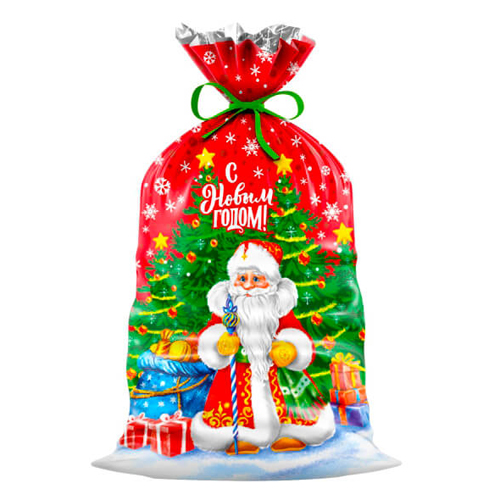 Пакет ПП " Интерпак " без ручек Новогодний- 25*40см 91мкм Сказочник, фольгированный