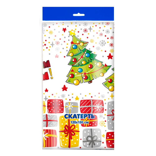 Скатерть одноразовая " Интерпак " 120*180см, 35мкм, ПВД, Карусель подарков, пакет, европодвес
