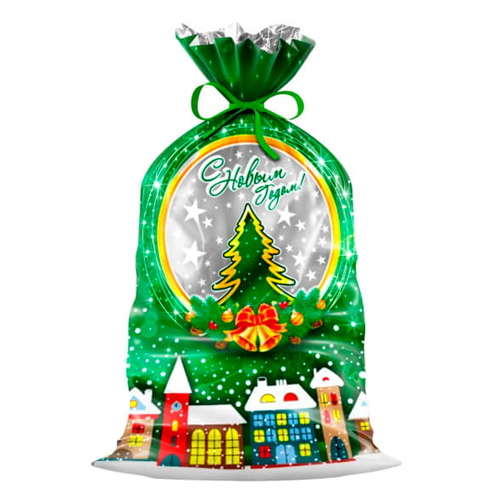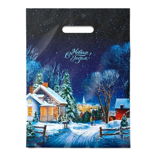 Пакет ПП " Интерпак " без ручек Новогодний- 25*40см 91мкм Зимний городок, фольгированный
