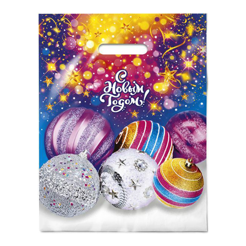 Пакет ПЭ " Интерпак " с вырубной ручкой ПВД, Новогодний- 31*40см 60мкм Дискотека