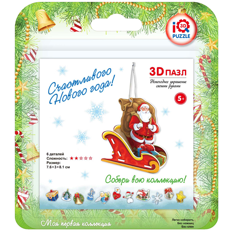 Набор для творчества IQ 3D PUZZLE "Елочное украшение своими руками. Дед Мороз"