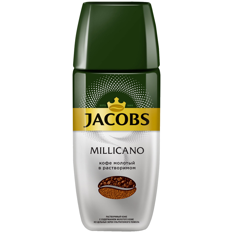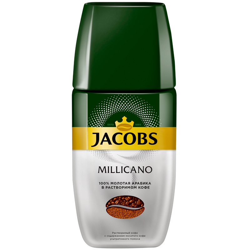 Кофе растворимый Jacobs "Monarch "Millicano", сублимированный, с молотым, стеклянная банка, 95г