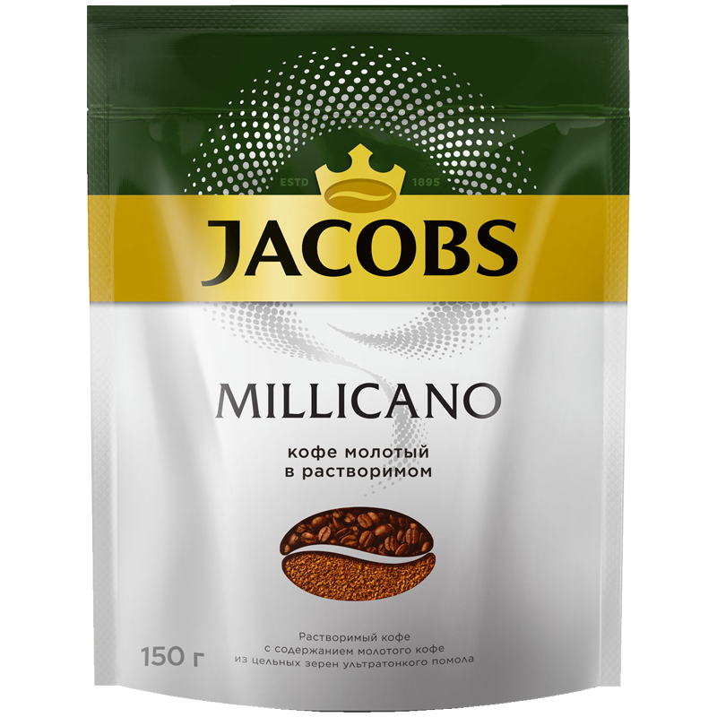 Кофе растворимый Jacobs "Monarch "Millicano", сублимированный, с молотым, мягкая упаковка, 150г