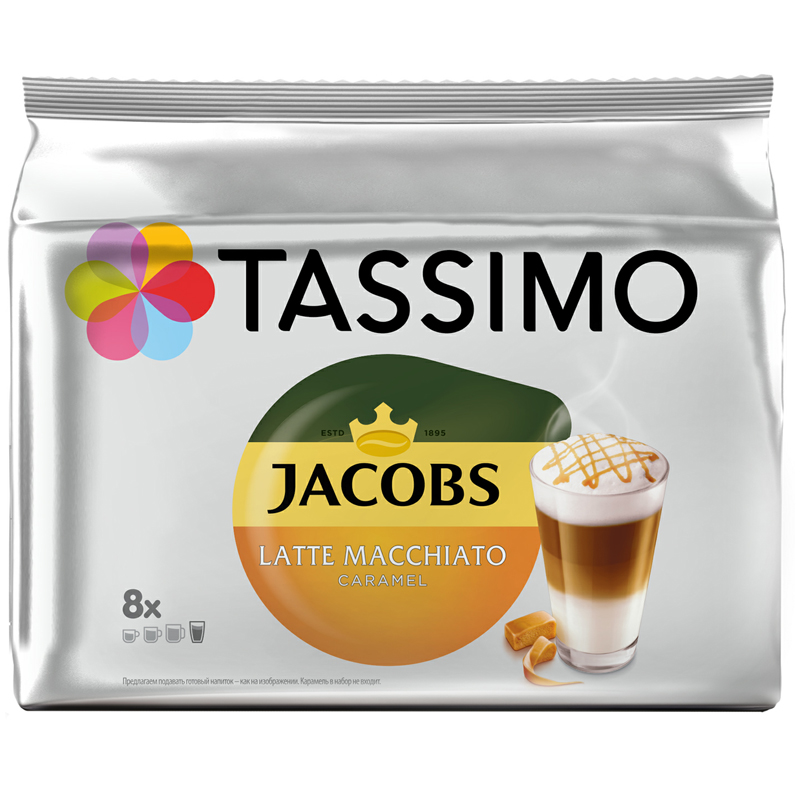 Кофе в капсулах Jacobs "Latte Macchiato Caramel", капсула 33,5г, 8 капсул, для машины Tassimo