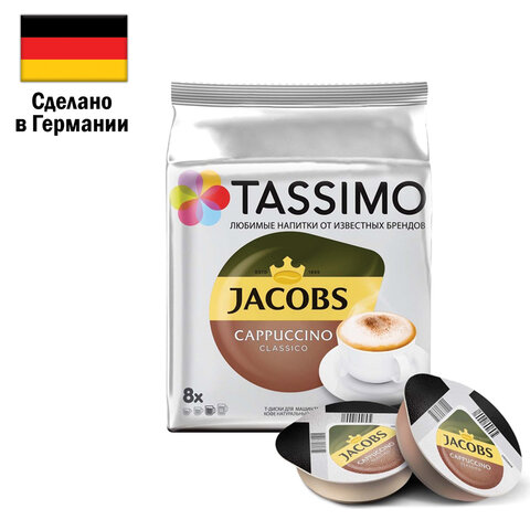 Кофе в капсулах JACOBS "Cappuccino" для кофемашин Tassimo, 8 порций (16 капсул), ГЕРМАНИЯ, 8052279