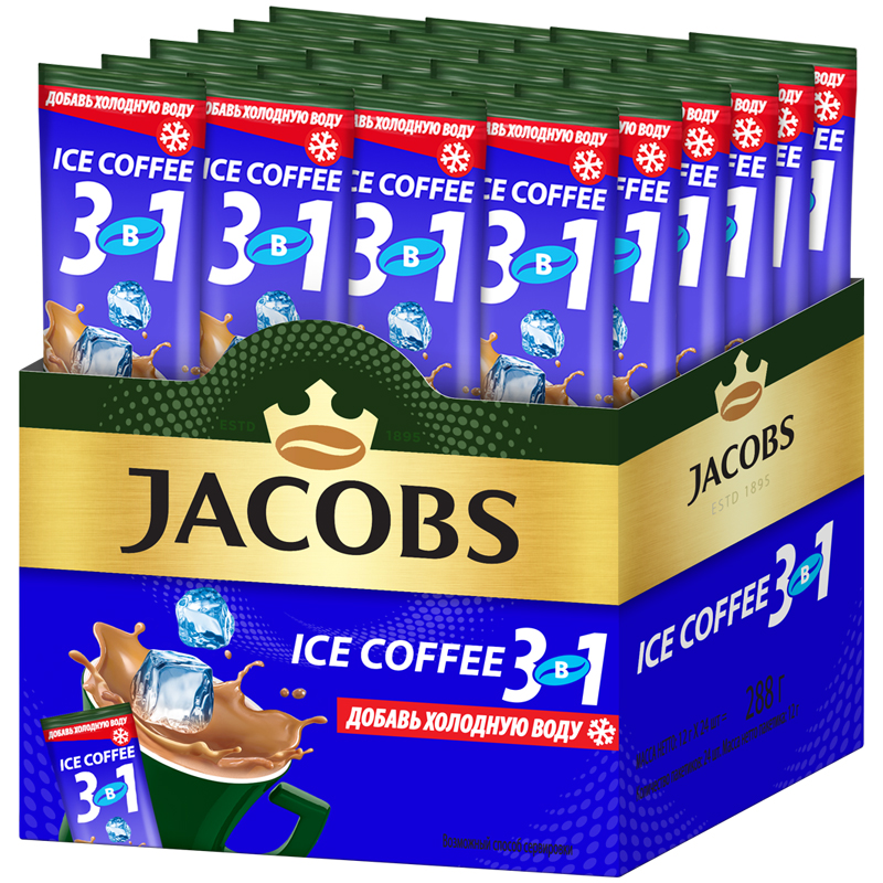 Кофе растворимый Jacobs "ICE Coffee", 3 в 1, порошкообразный, порционный, 24 пакетика*12г, пакет