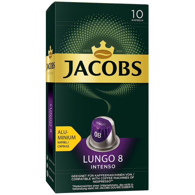 Кофе в капсулах Jacobs "Lungo Intenso 8", капсула 5,2 г, 10 алюм. капсул, для машины Nespresso