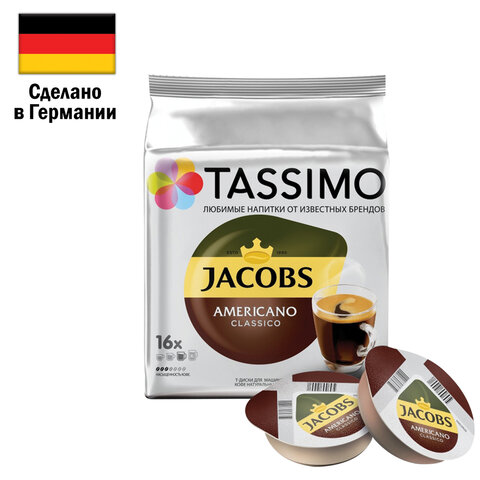 Кофе в капсулах JACOBS "Americano Classico" для кофемашин Tassimo, 16 порций, ГЕРМАНИЯ, 4000857