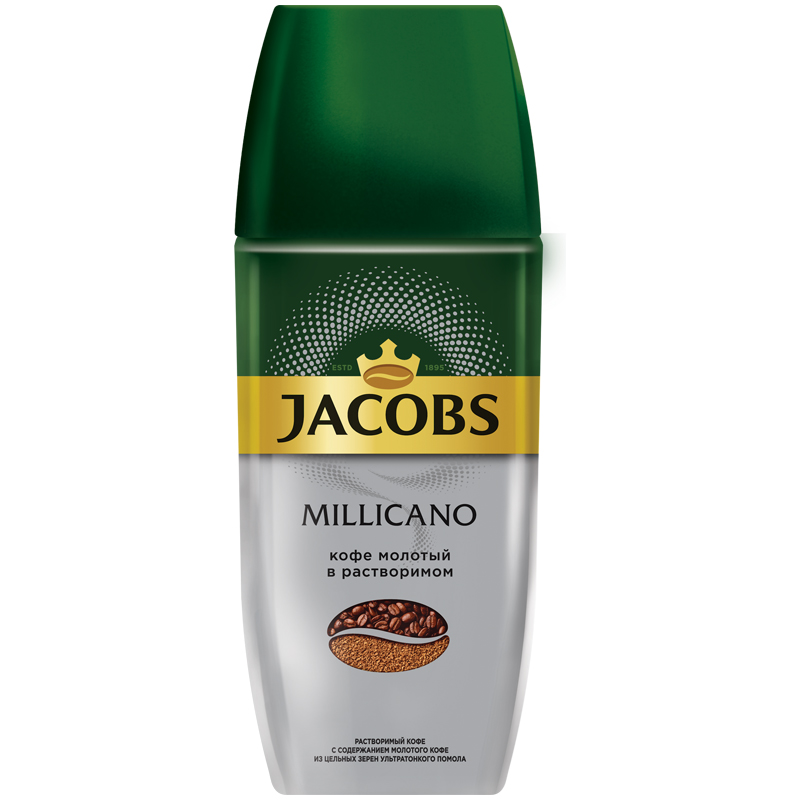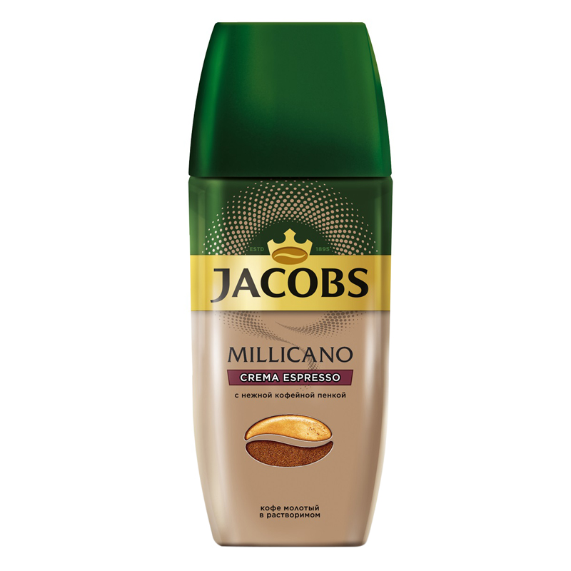 Кофе растворимый Jacobs "Millicano Crema Espresso", порошкообразный, с молотым, стеклянная банка,95г