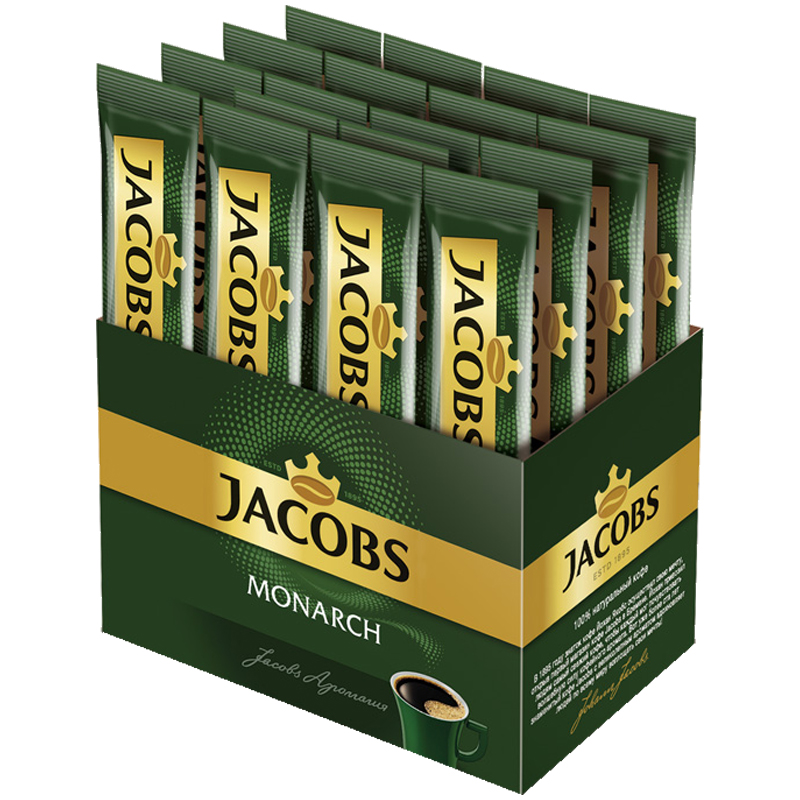 Кофе растворимый Jacobs "Monarch", гранулированный, порционный, шоубокс, 26 пакетиков*1,8г, картон