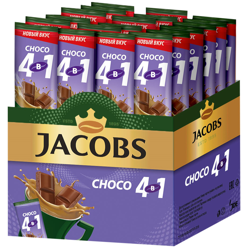 Кофе растворимый Jacobs "Choco", с какао-порошком, 4в1, порционный 24 пакетика*13,5г
