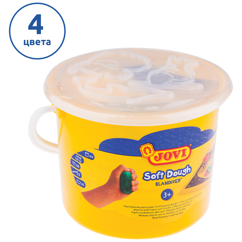 Тесто для лепки JOVI, 04 цвета*50г, аксессуары, пластиковое ведро