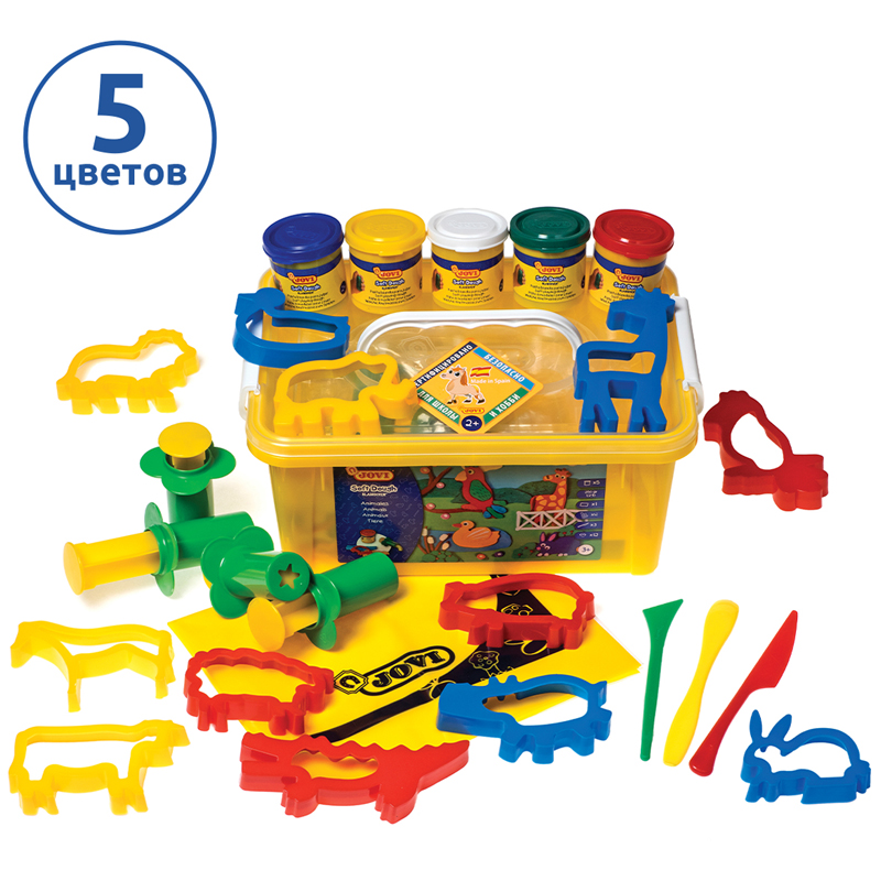 Набор для лепки JOVI "Зоопарк" 05 цветов*50г, аксессуары, пластиковый контейнер