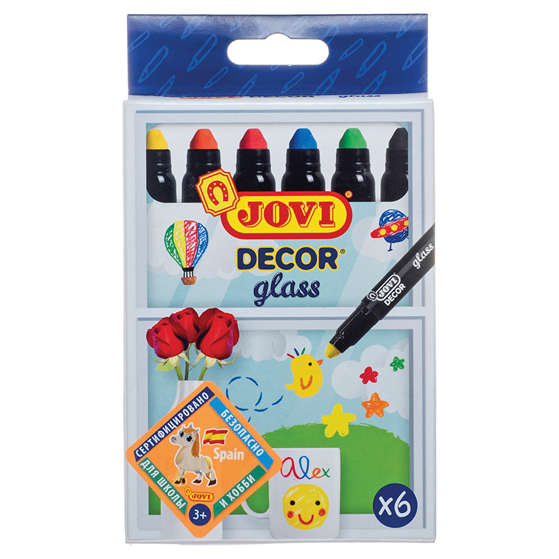 Набор восковых мелков для стекла JOVI "Décor glass" 06цв., выдвижные, картон. упаковка, европодвес