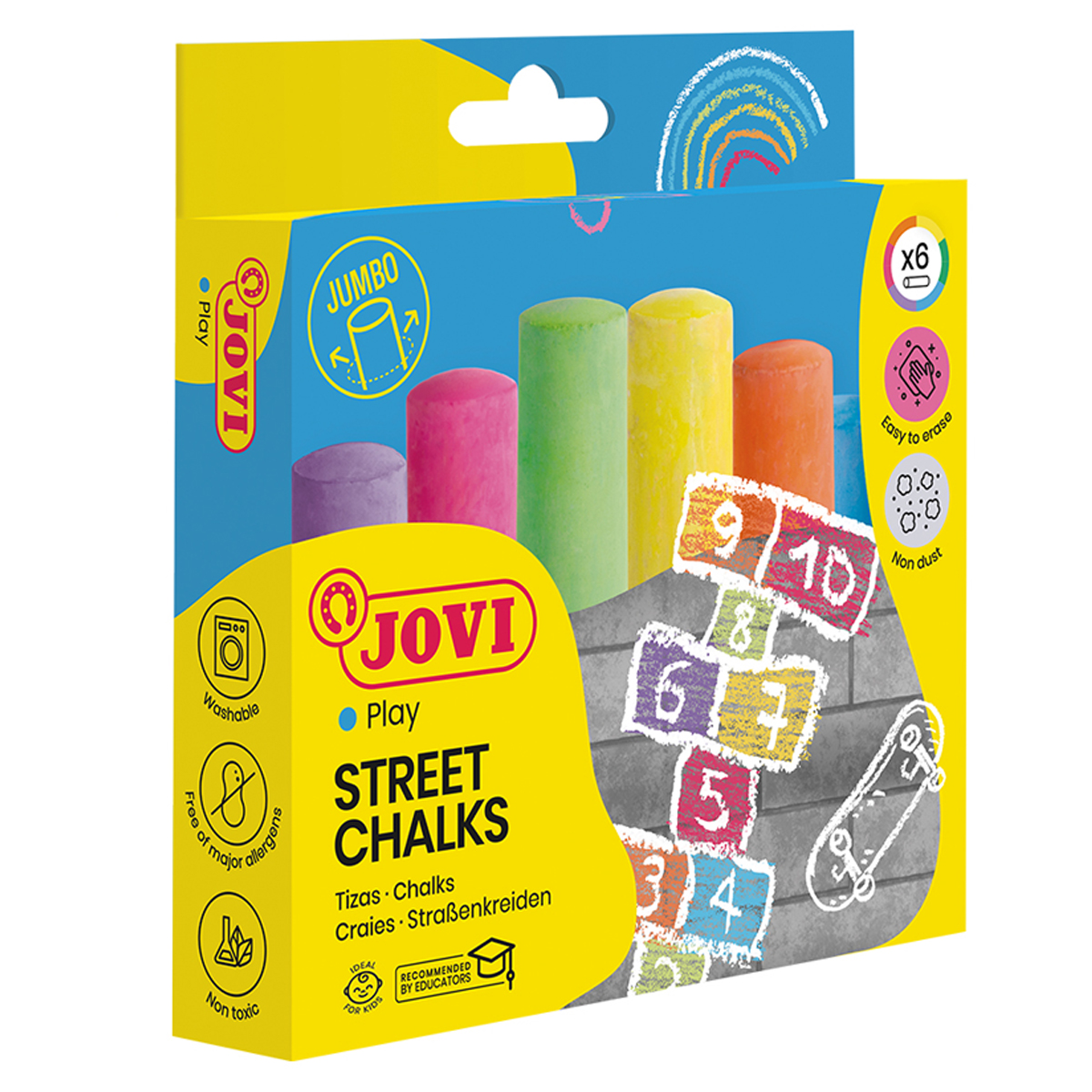 Набор цветных мелков асфальтовых JOVI, 6шт., 6цв., круглый, картонная коробка
