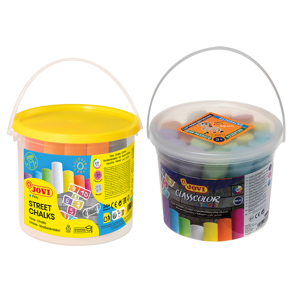Мелки цветные для асфальта JOVI, 21шт., 7цв., круглые, пластиковое ведро
