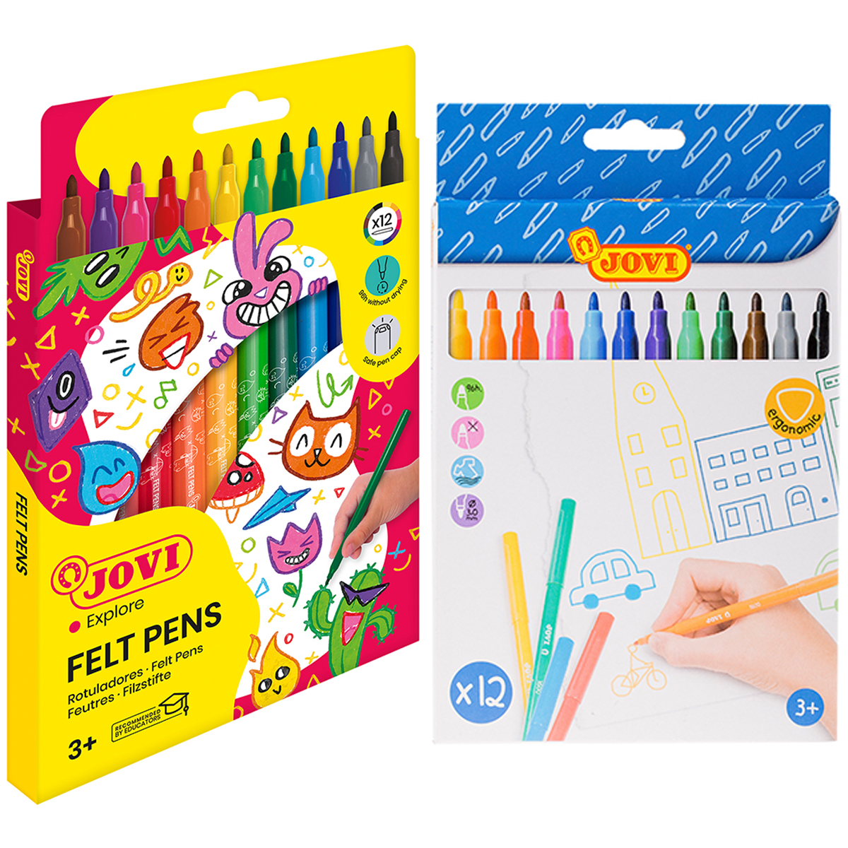Фломастеры JOVI, 12цв., утолщенные, смываемые, картон, европодвес