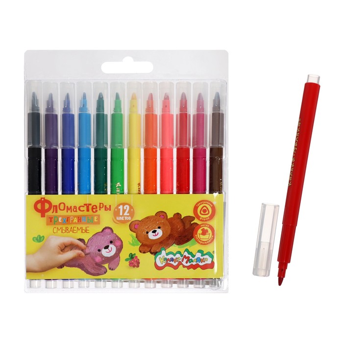 Фломастеры 12 цветов "Каляка-Маляка", трёхранные, легкосмываемые ФТГКМ12