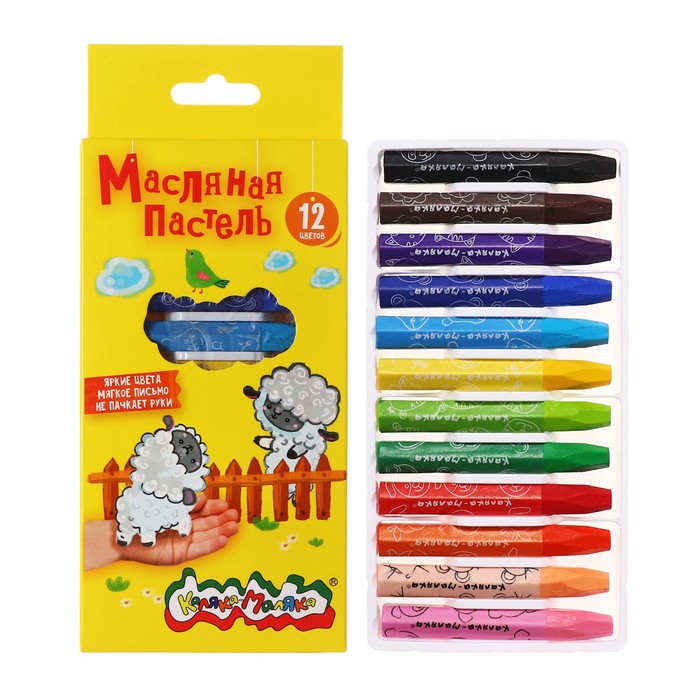 Пастель масляная 12 цветов "Каляка-Маляка", утолщенная, 11 мм, шестигранная