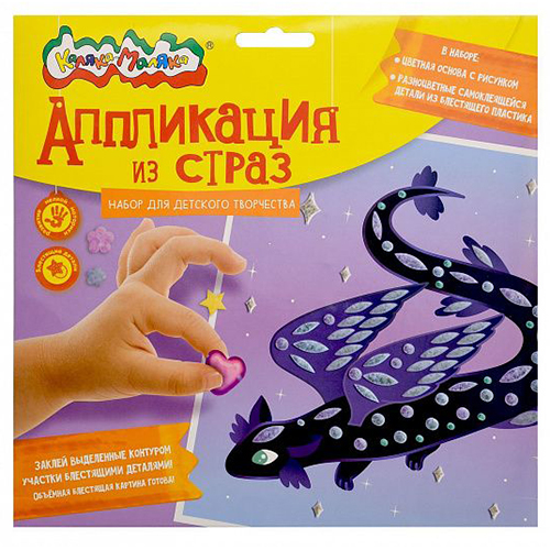 Аппликация из страз 200*200мм 1л " Каляка-Маляка " Дракон, картонная упаковка, европодвес