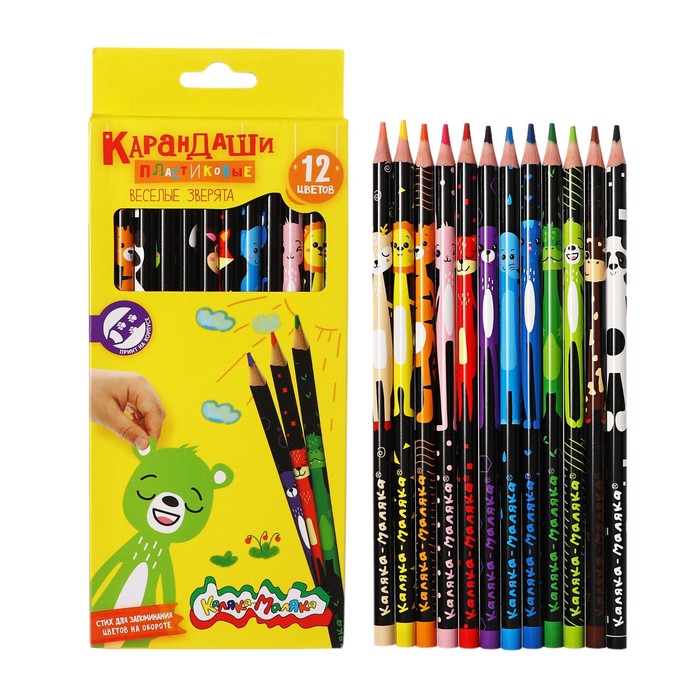 Карандаши 12 цветов "Каляка-Маляка" С ПЕРСОНАЖАМИ, круглые, с принтом