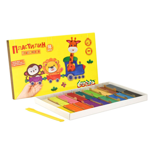 Пластилин восковой 18 цветов по 15 г "Каляка-Маляка", со стеком