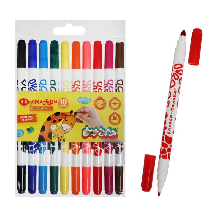 Фломастеры 10 цветов "Каляка-Маляка", двухсторонние, легкосмываемые, круглый корпус, в блистере