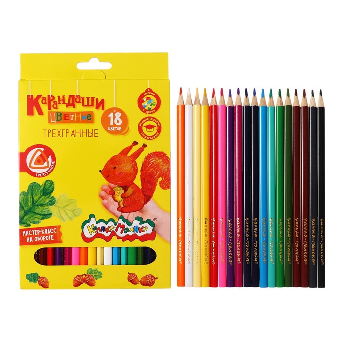 Карандаши 18 цветов "Каляка-Маляка", трехгранные, деревянный корпус