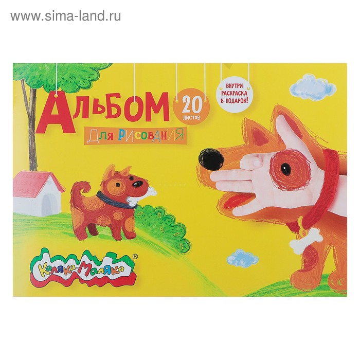 Альбом для рисования 20 листов "Каляка-Маляка" А4, на скрепке, картонная обложка, блок 100 г/м2