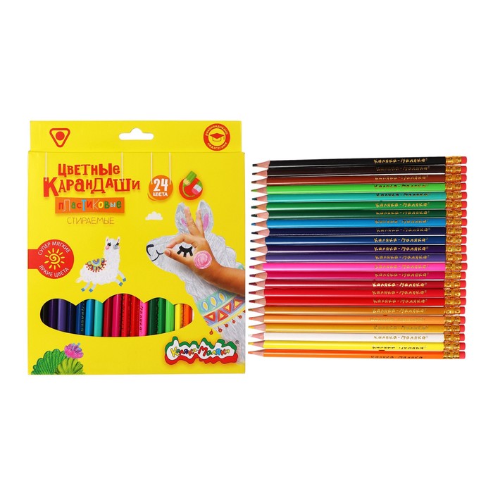 Карандаши 24 цвета "Каляка-Маляка" СТИРАЕМЫЕ, с ластиком, трехгранные, пластиковый корпус