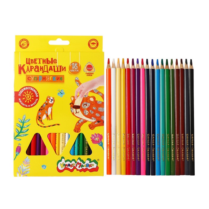 Карандаши 18 цветов "Каляка-Маляка" ПРЕМИУМ, трехгранные, деревянный корпус, утолщенные, супермягкий грифель