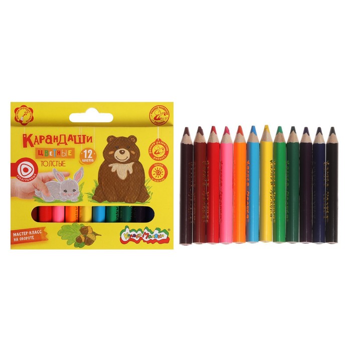 Карандаши 12 цветов "Каляка-Маляка", трёхгранные, толстые