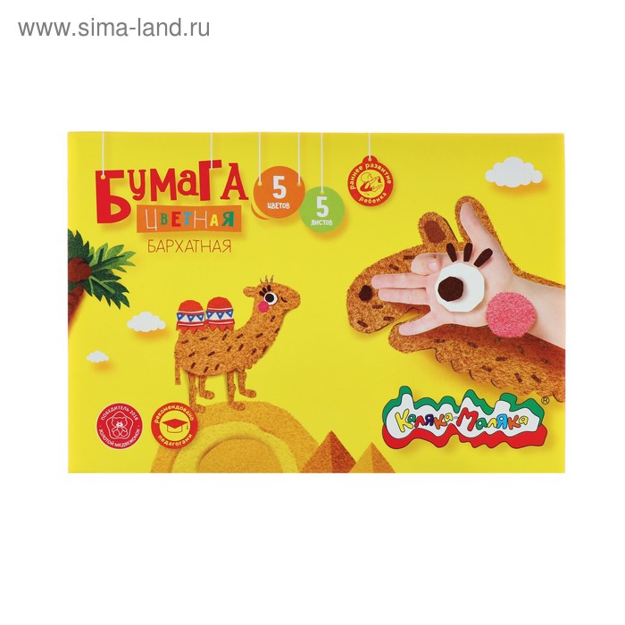 Бумага цветная бархатная, 5 листов, 5 цветов "Каляка-Маляка", 175 х 250 мм