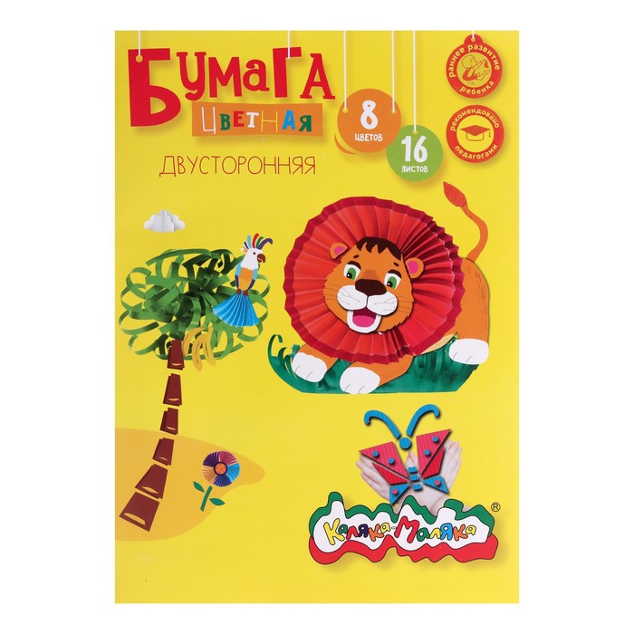 Бумага цветная двусторонняя А4, 16 листов, 8 цветов "Каляка-Маляка"