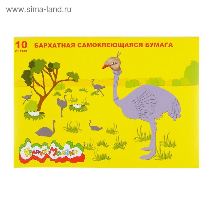 Бумага цветная самоклеящаяся бархатная 10 листов, 10 цветов "Каляка-Маляка", 175 х 250 мм