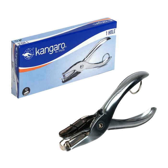 Дырокол стальной 10 листов, Kangaro One Hole, на 1 отверстие, металлик