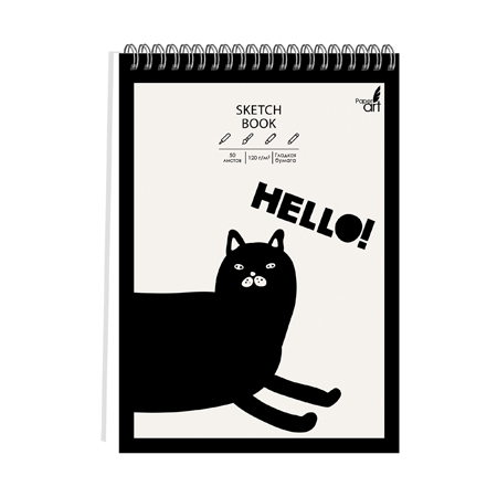 Скетчбук, белая бумага 120г/м2, А5, 50л, спираль, 7БЦ, без линовки, обложка - глянцевый ламинированный картон, микротекстурирование, " Канц-Эксмо " Hello!