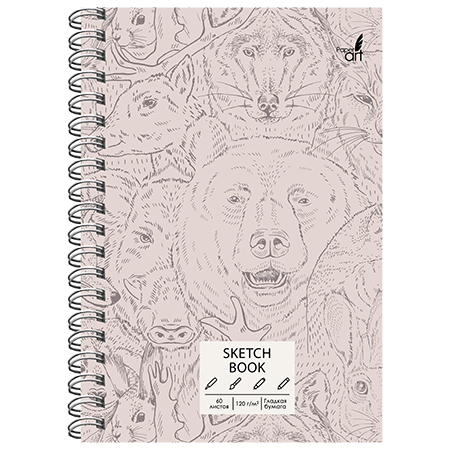 Скетчбук, белая бумага 120г/м2, А5, 60л, спираль, 7БЦ, без линовки, обложка - твердый картон, ламинация soft-touch, " Канц-Эксмо " В лесу