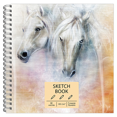 Скетчбук, белая бумага 100г/м2, 195*195мм, 80л, спираль, 7БЦ, без линовки, обложка - матовый ламинированный картон, " Канц-Эксмо " Лошади