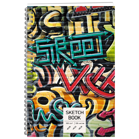 Скетчбук, белая бумага 100г/м2, А5, 100л, спираль, 7БЦ, без линовки, обложка - матовый ламинированный картон, " Канц-Эксмо " Граффити