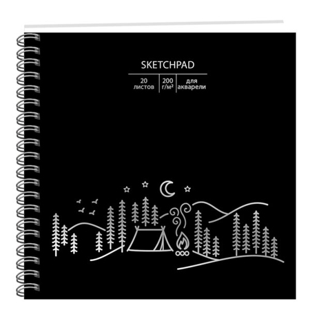 Скетчпад, акварельная бумага 120 г/м2, 195*195мм, 20л, спираль, без линовки, обложка - мелованный картон, тиснение фольгой, перфорация, " Канц-Эксмо " Лесные сны