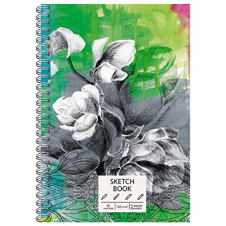 Скетчбук, белая бумага 120г/м2, А5, 60л, спираль, 7БЦ, без линовки, обложка - твердый картон, ламинация soft-touch, " Канц-Эксмо " Flower