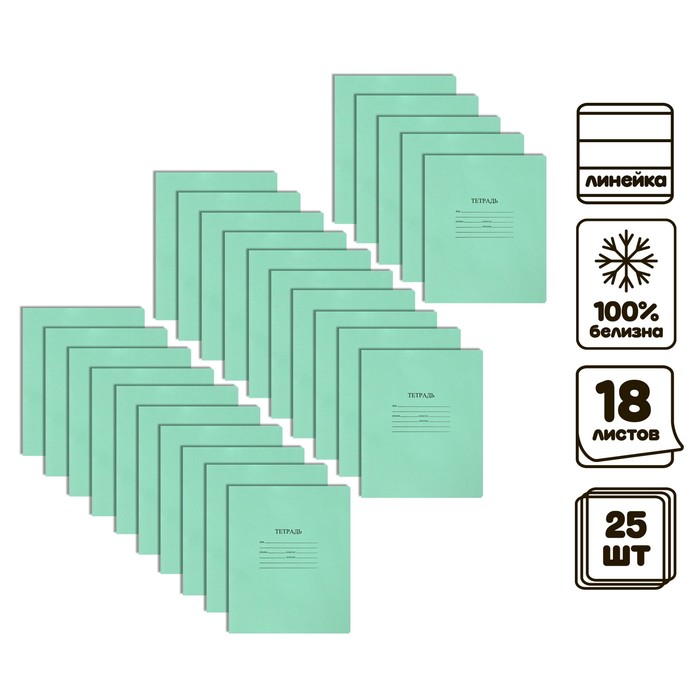 Комплект тетрадей из 25 штук, 18 листов в линию КФОБ "Зелёная обложка", с алфавитом, 60 г/м2, блок офсет, белизна 100%