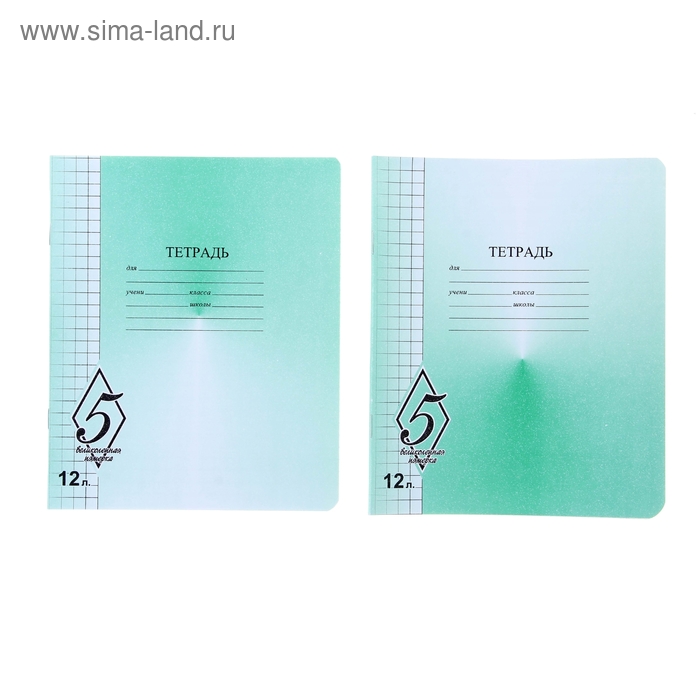 Тетрадь 12 листов косая линейка "Зелёная обложка", термоупаковка 25 шт