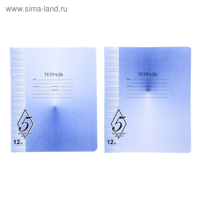 Тетрадь 12 листoв крупная клетка "Великолепная пятерка", бумажная обложка, МИКС