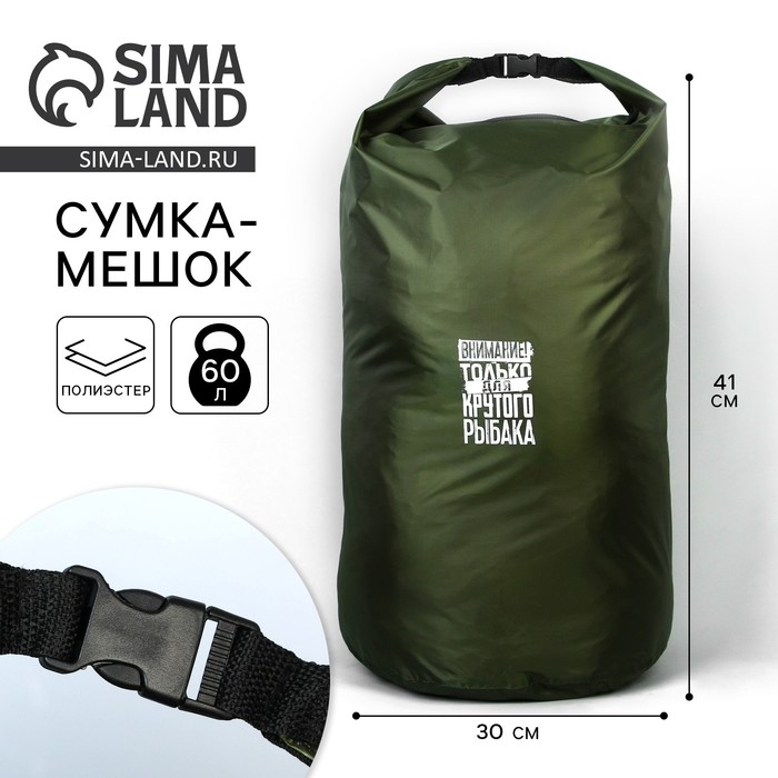 Гермомешок «Для крутого рыбака», 60 л., зеленый.
