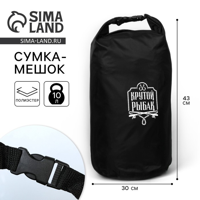 Гермомешок «Крутой рыбак», 10 л., черный.