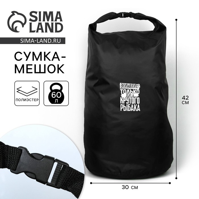 Гермомешок «Для крутого рыбака», 60 л., черный.