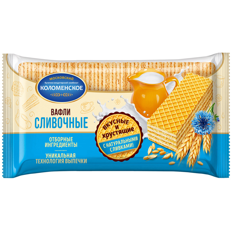 Вафли Коломенский "Сливочные", традиционные, 220г, флоу-пак